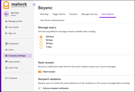 To enable this feature for all your company Mailock users, please navigate to the Company Admin portal.