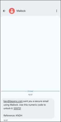 Take note of the 4-character reference included in the message (see above), as it corresponds to the text message you received (see below). This reference helps identify which specific message the code is associated with.