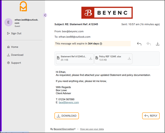 If you would like to reply securely to the sender click on the ‘Reply’ button, either at the top or bottom right of the screen. More details can be found here.